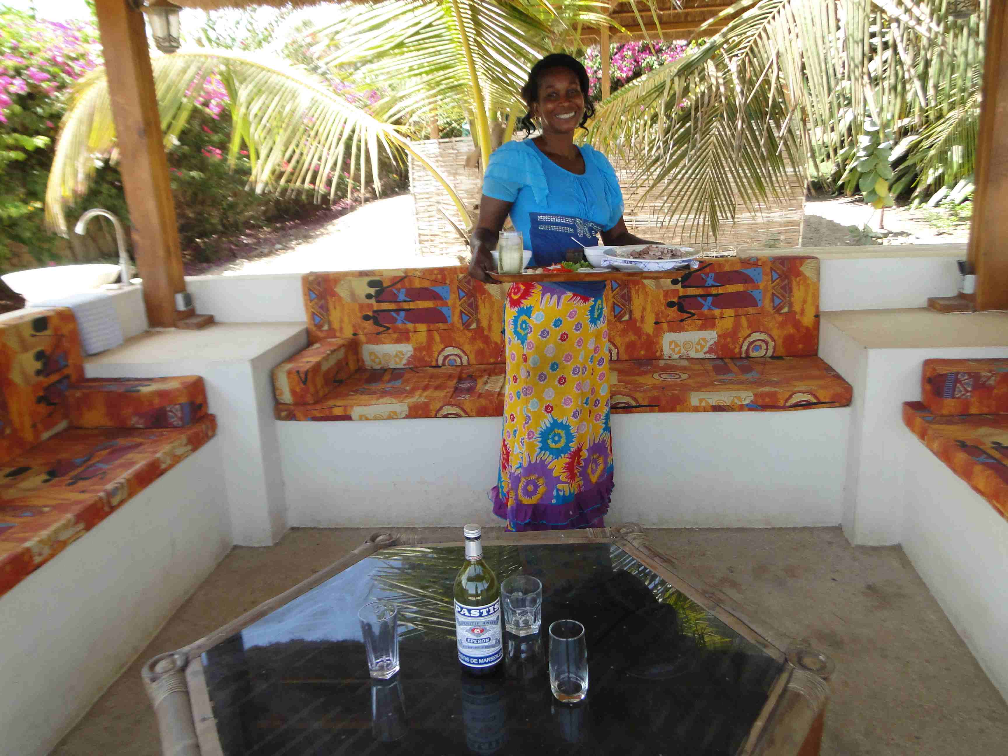 Vous prendrez votre petit déjeuner sur une grande terrasse dominant la piscine et la plage avec comme spectacle un pécheur lançant ses filets ou d’autres revenant en pirogue frôlés par les ailes des pélicans.